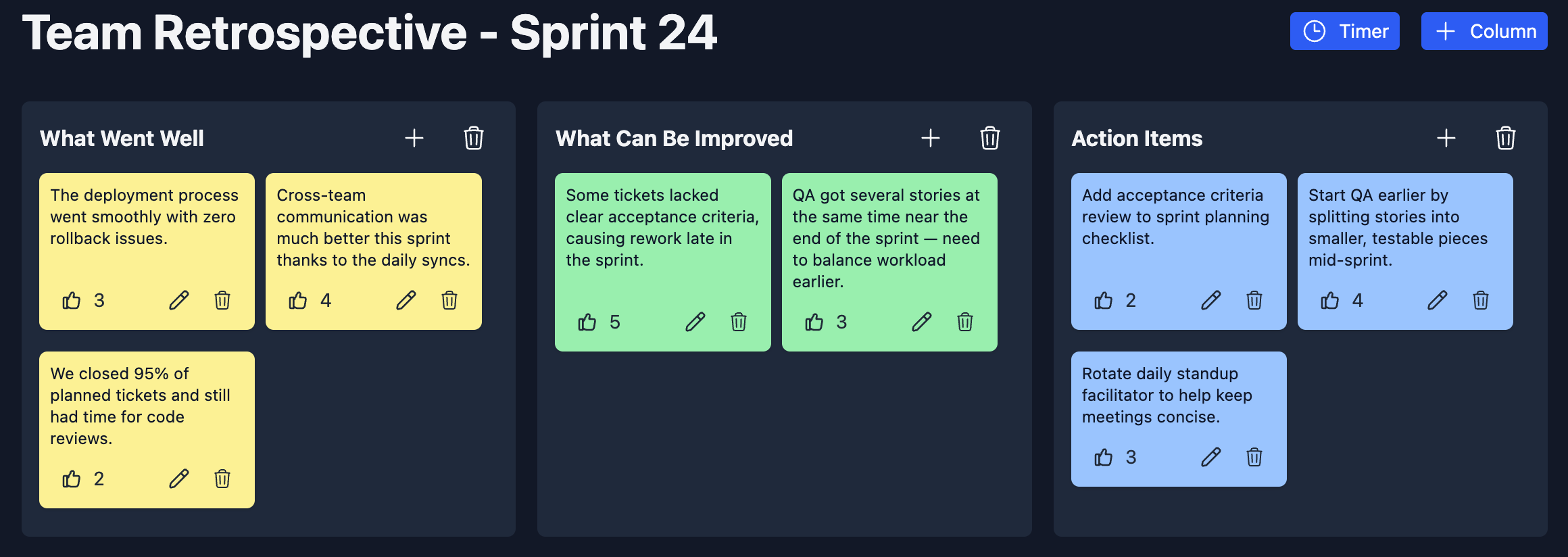 Empower each crew member to share insights - turning retros into real conversations that move your mission forward.